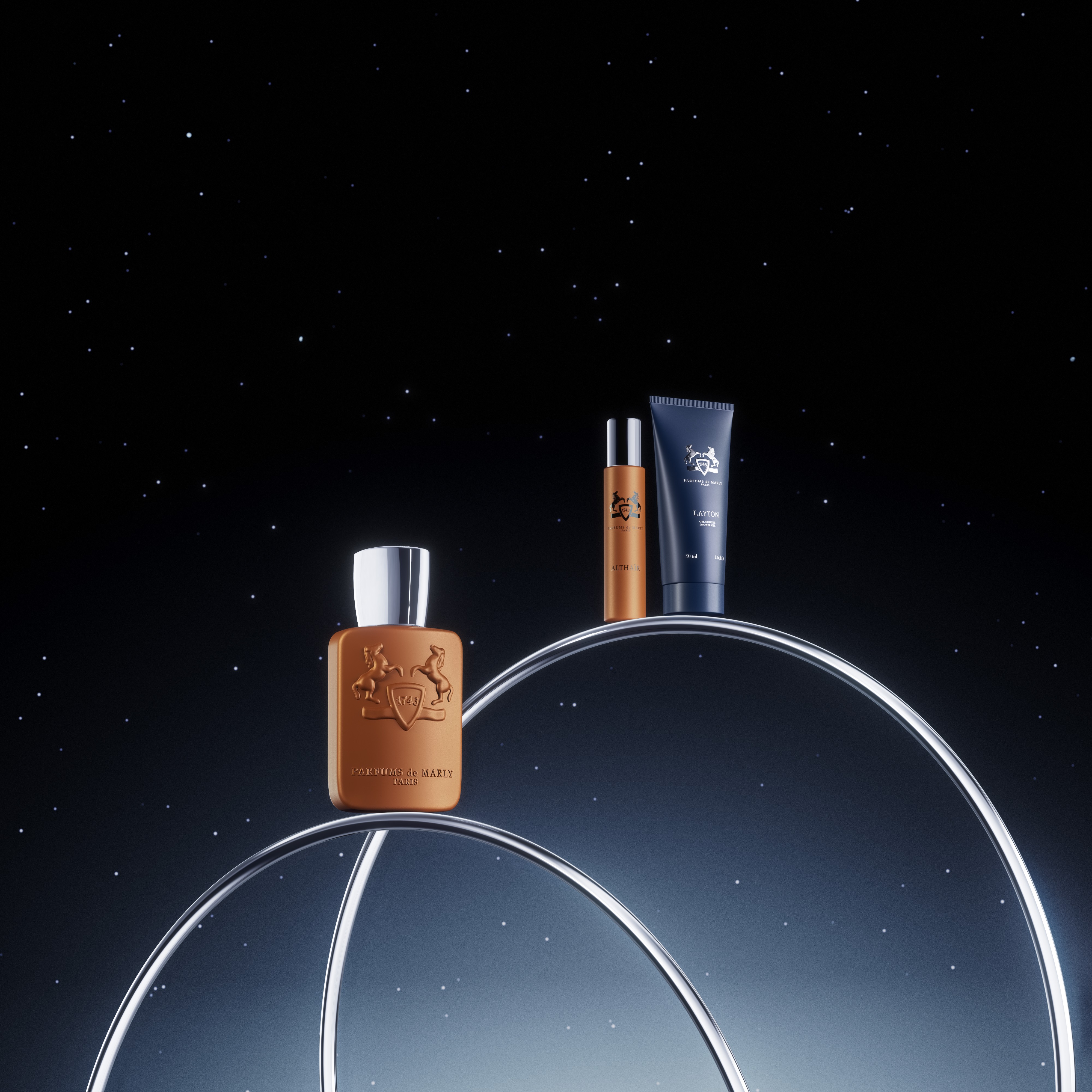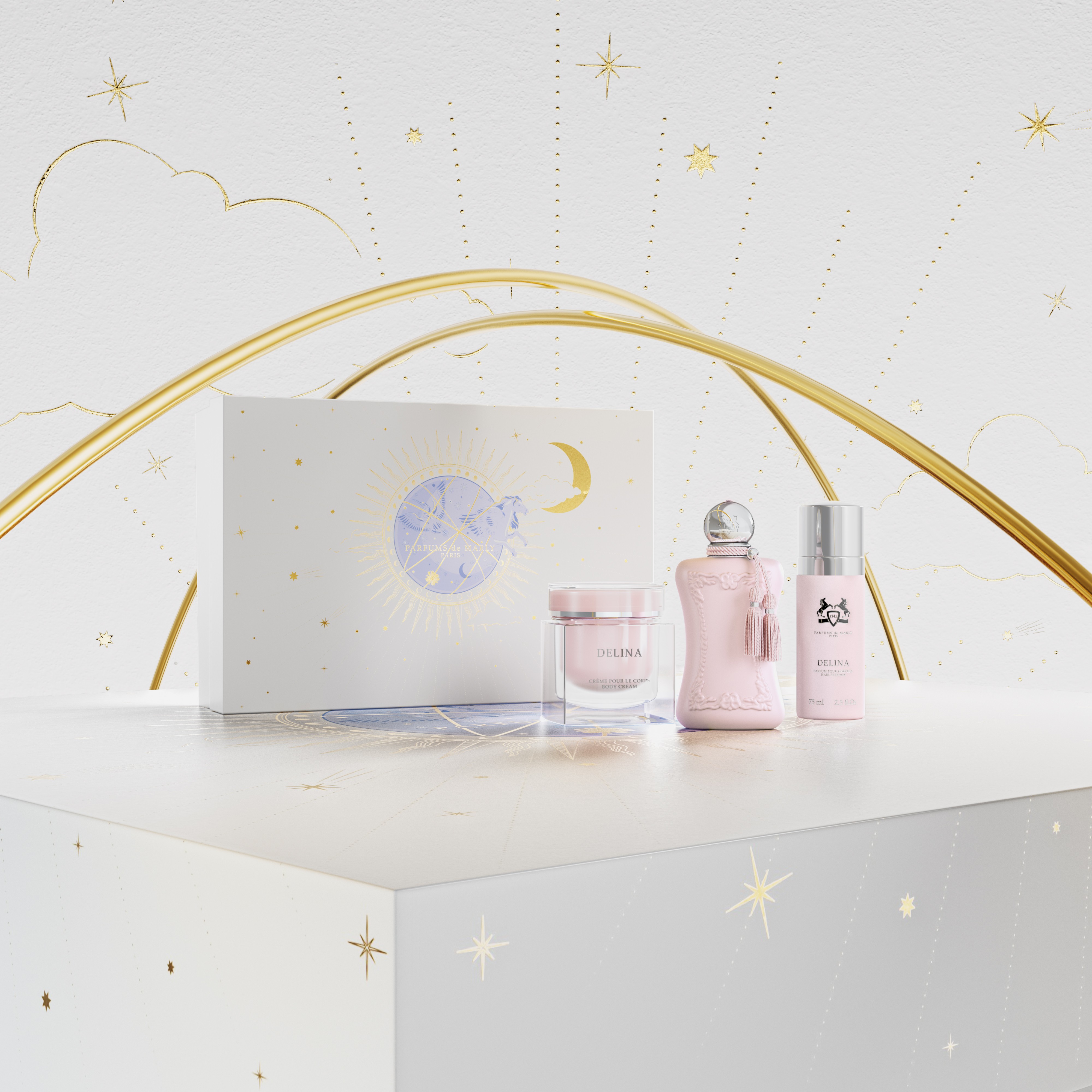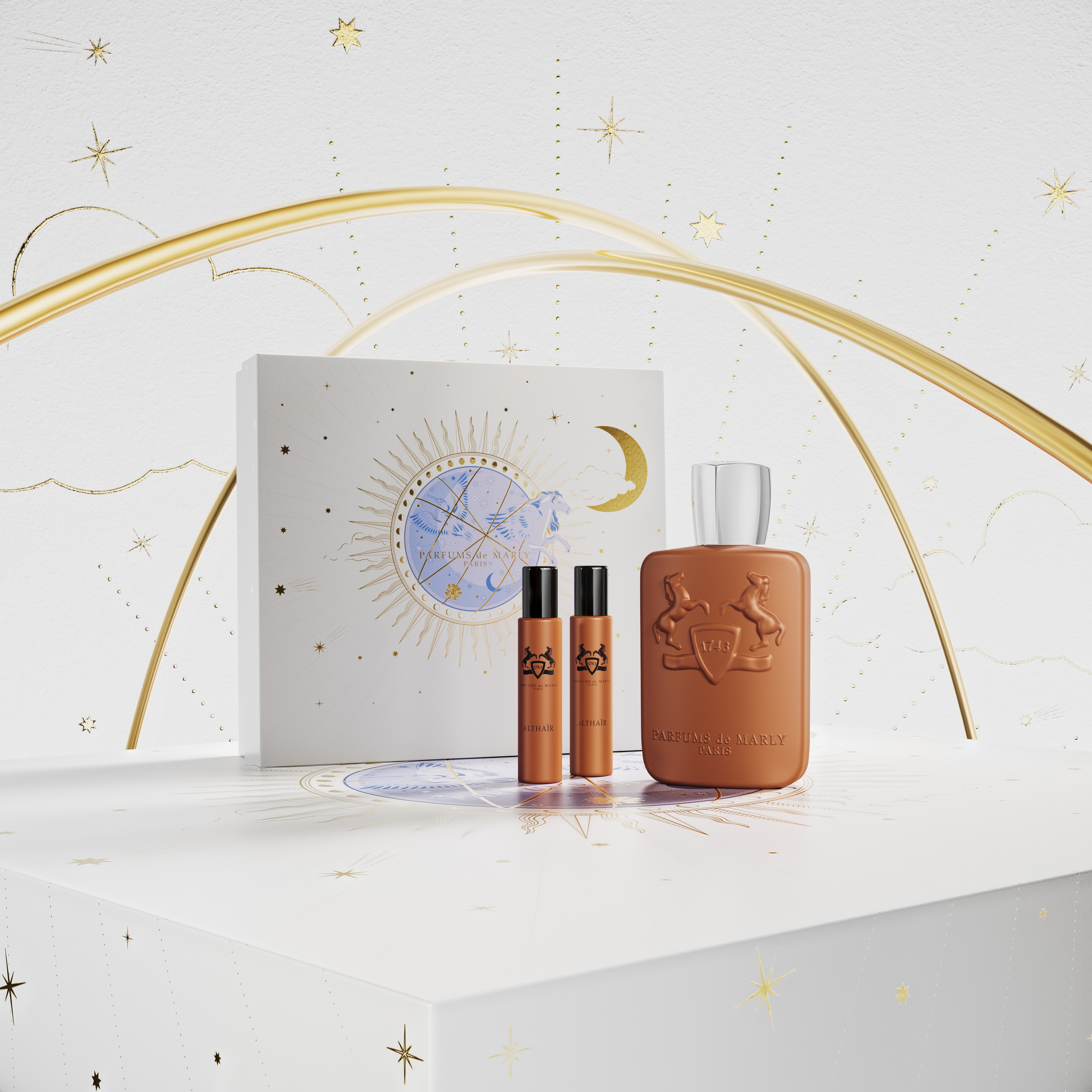 Full series of holiday visuals for Parfums de Marly, translating the brand’s elegance into a refined and immersive festive concept.