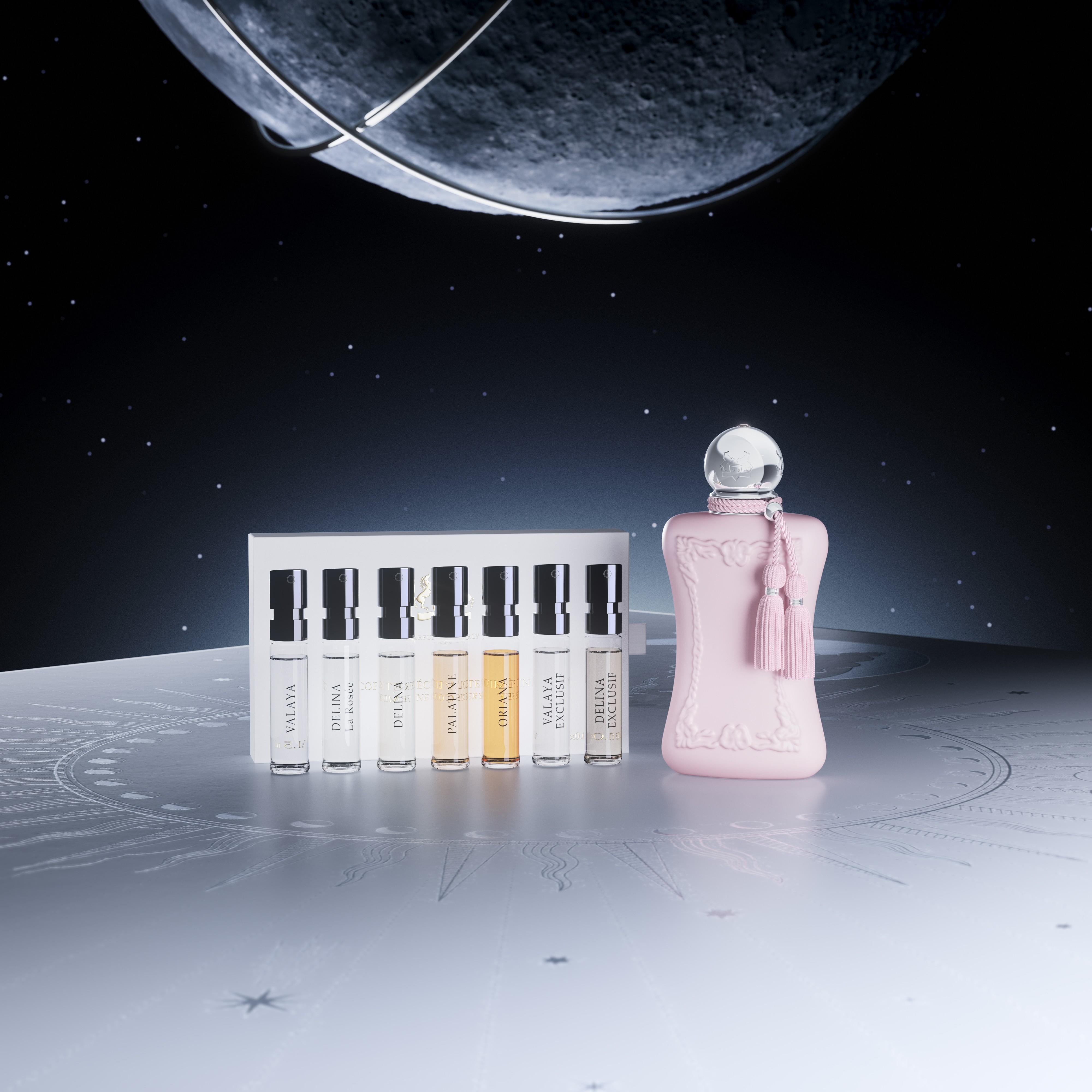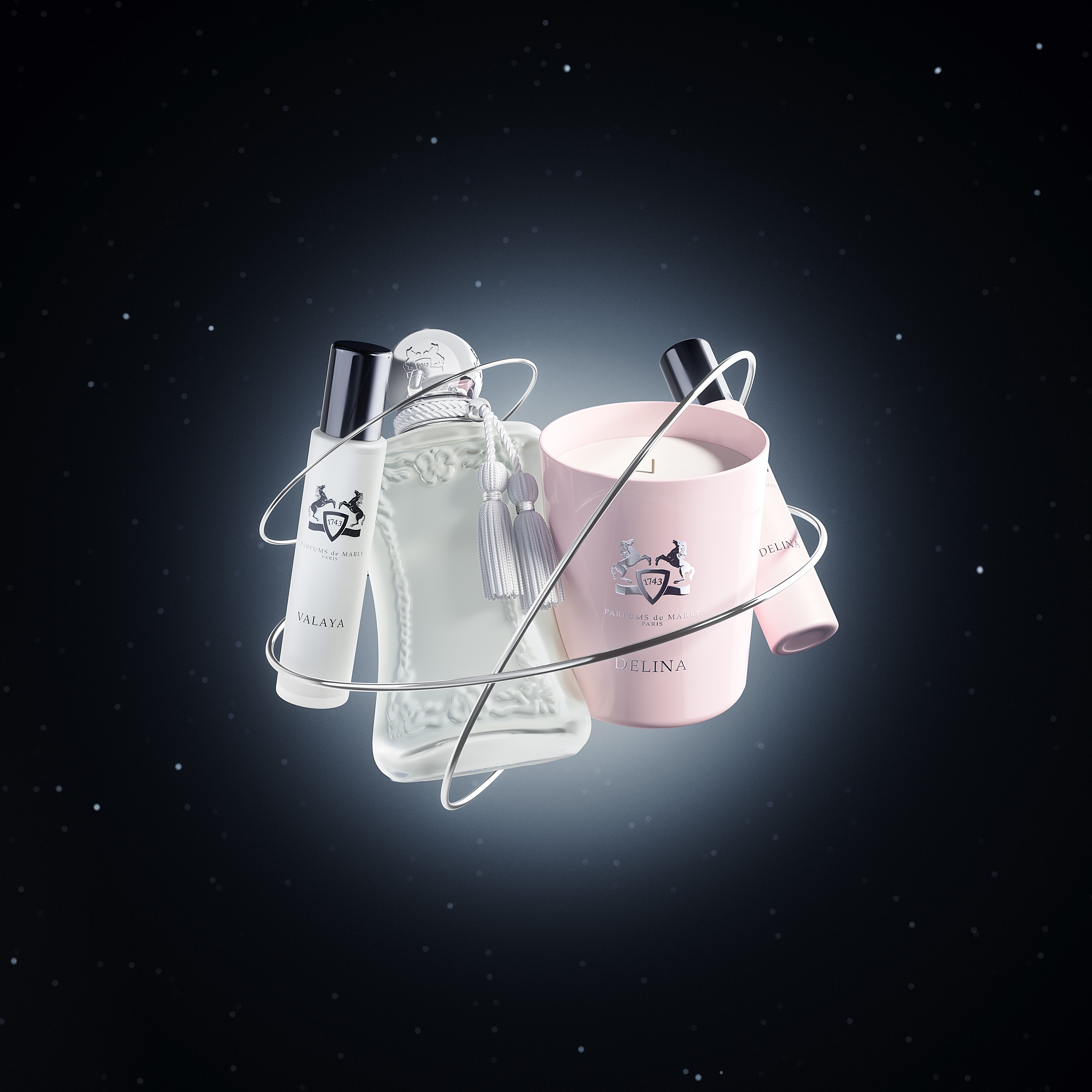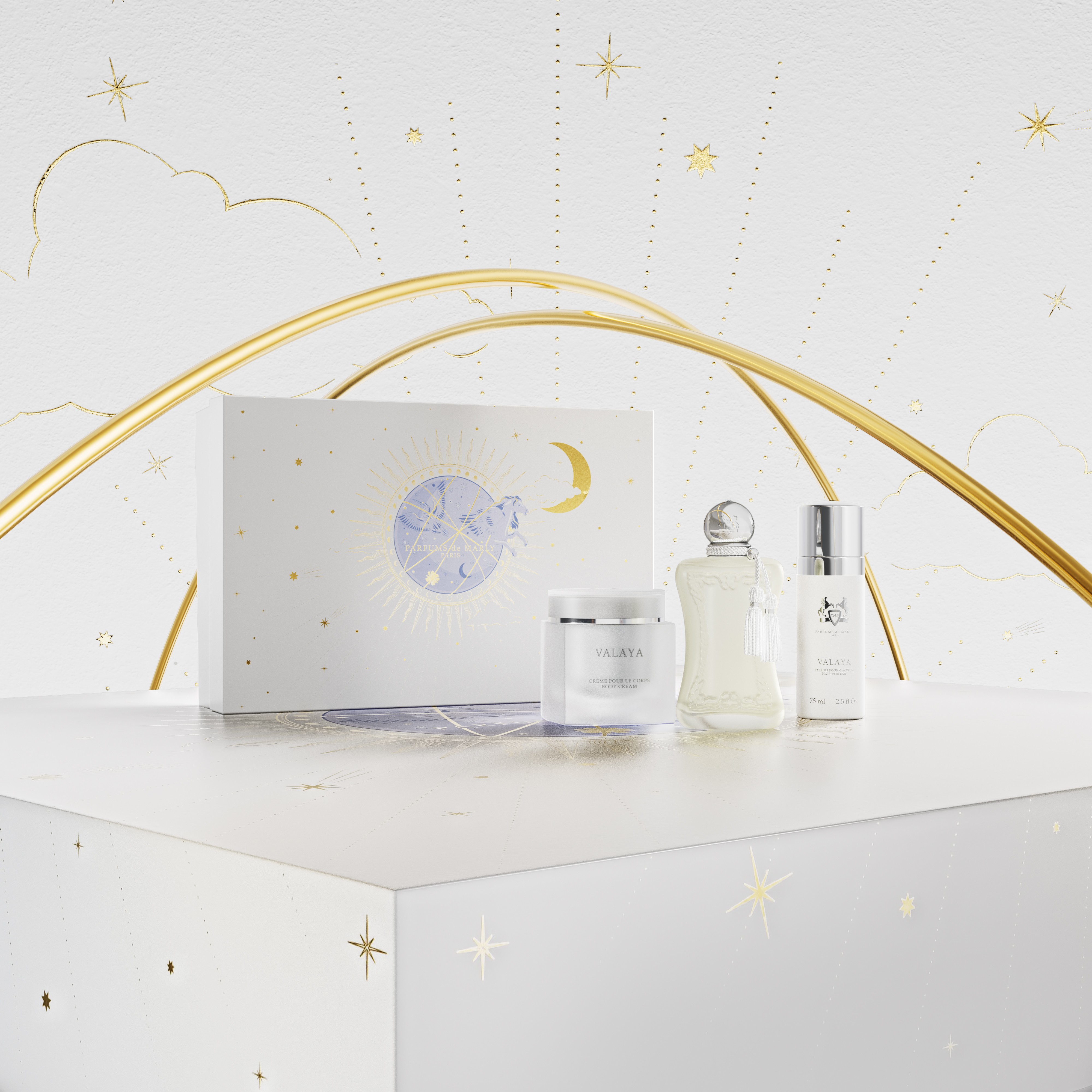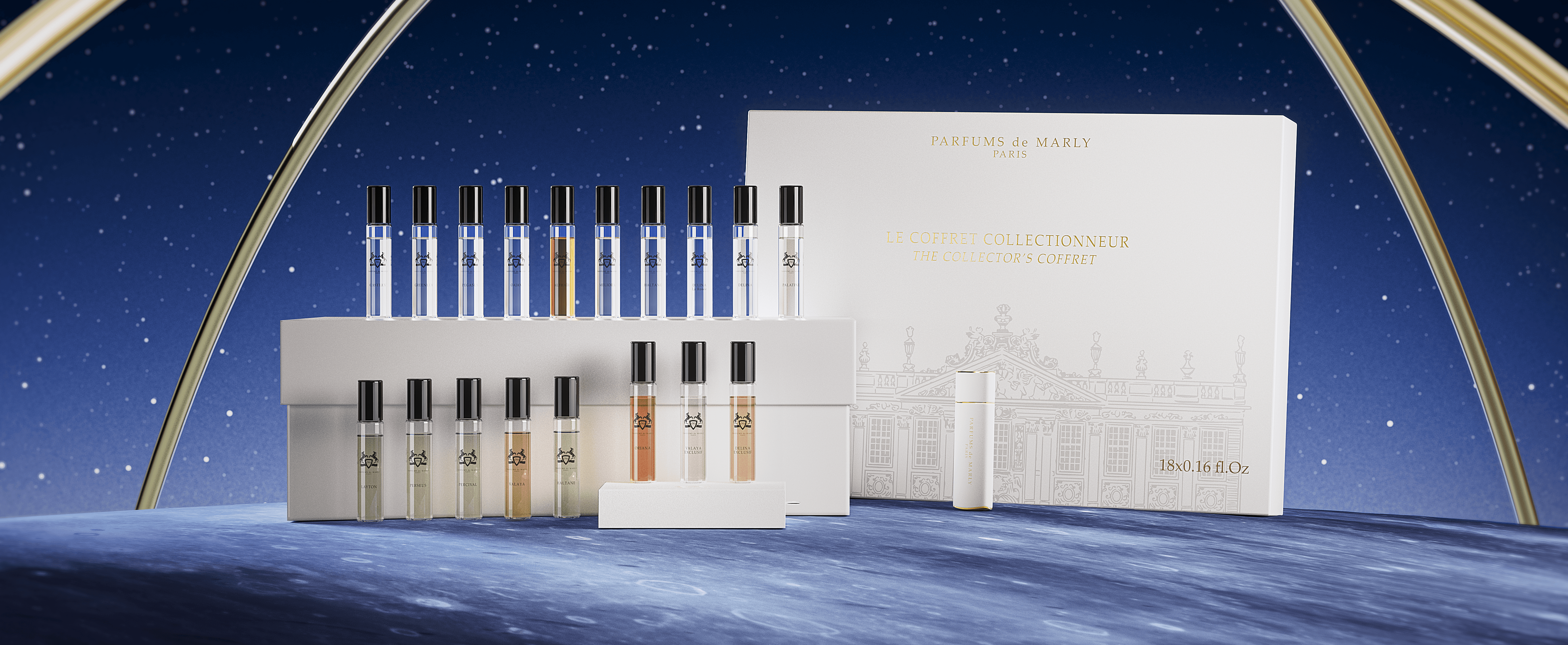 Full series of holiday visuals for Parfums de Marly, translating the brand’s elegance into a refined and immersive festive concept.
